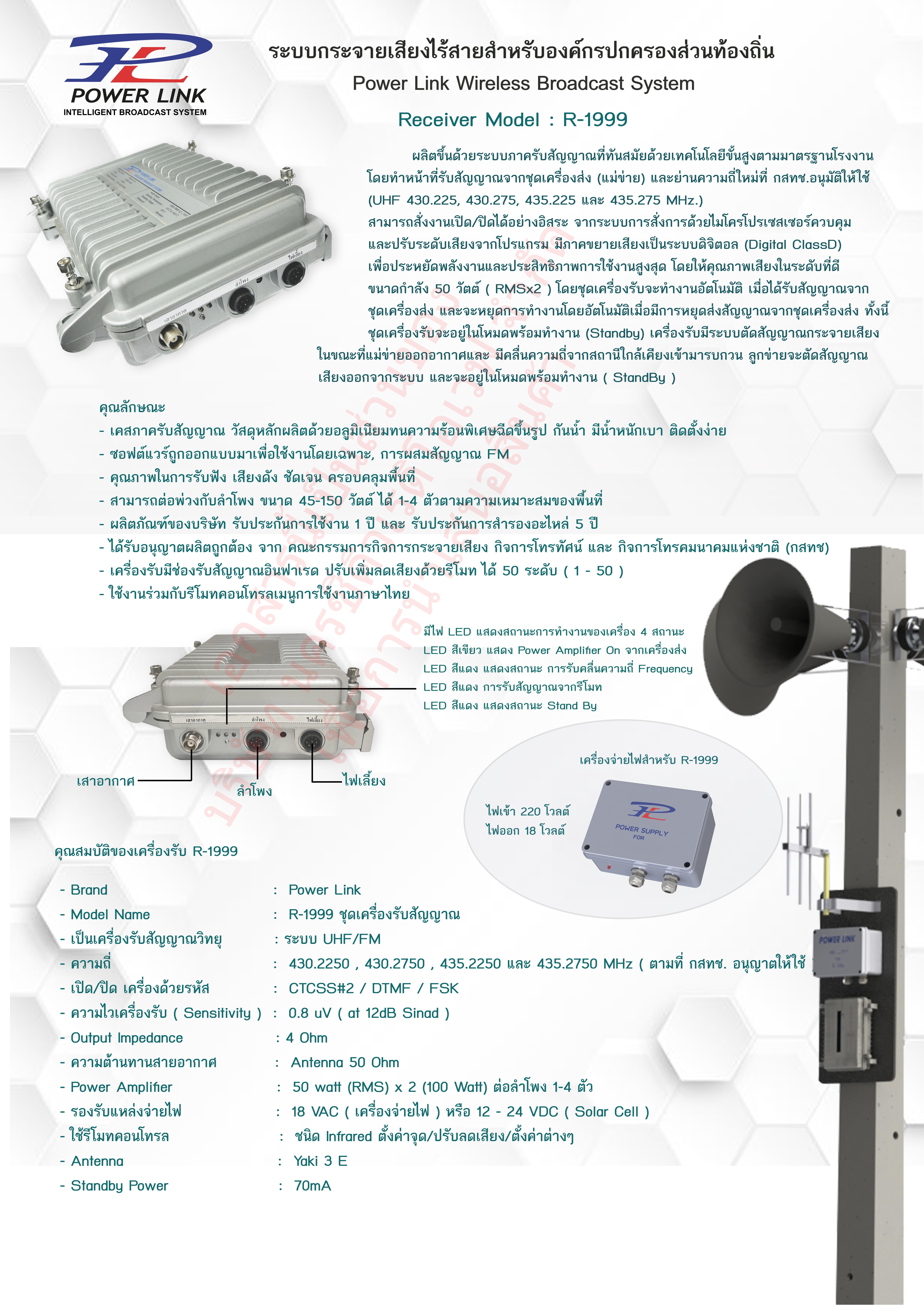 เครื่องรับสัญญาณ ระบบกระจายเสียงไร้สายสำหรับองค์กรปกครองส่วนท้องถิ่น