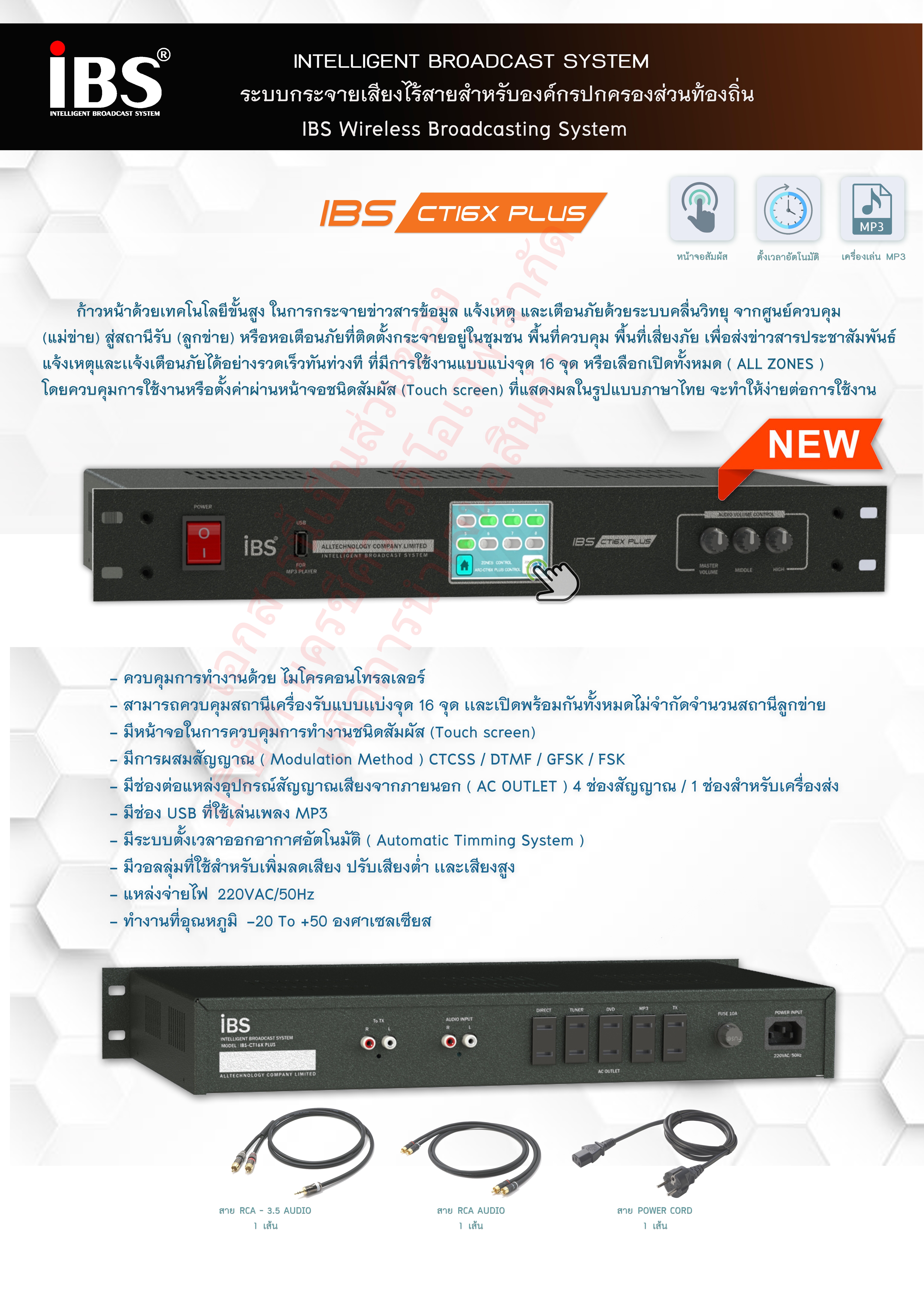 ระบบกระจายเสียงไร้สายสำหรับองค์กรปกครองส่วนท้องถิ่น    รุ่น IBS CT16X PLUS